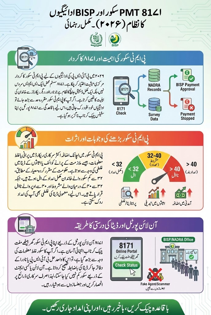 In 2026, PMT score is directly linked with BISP payment approval. Even families who have been receiving payments for years can face suspension if their score crosses the allowed limit. This often surprises beneficiaries, but it is part of the updated verification policy.