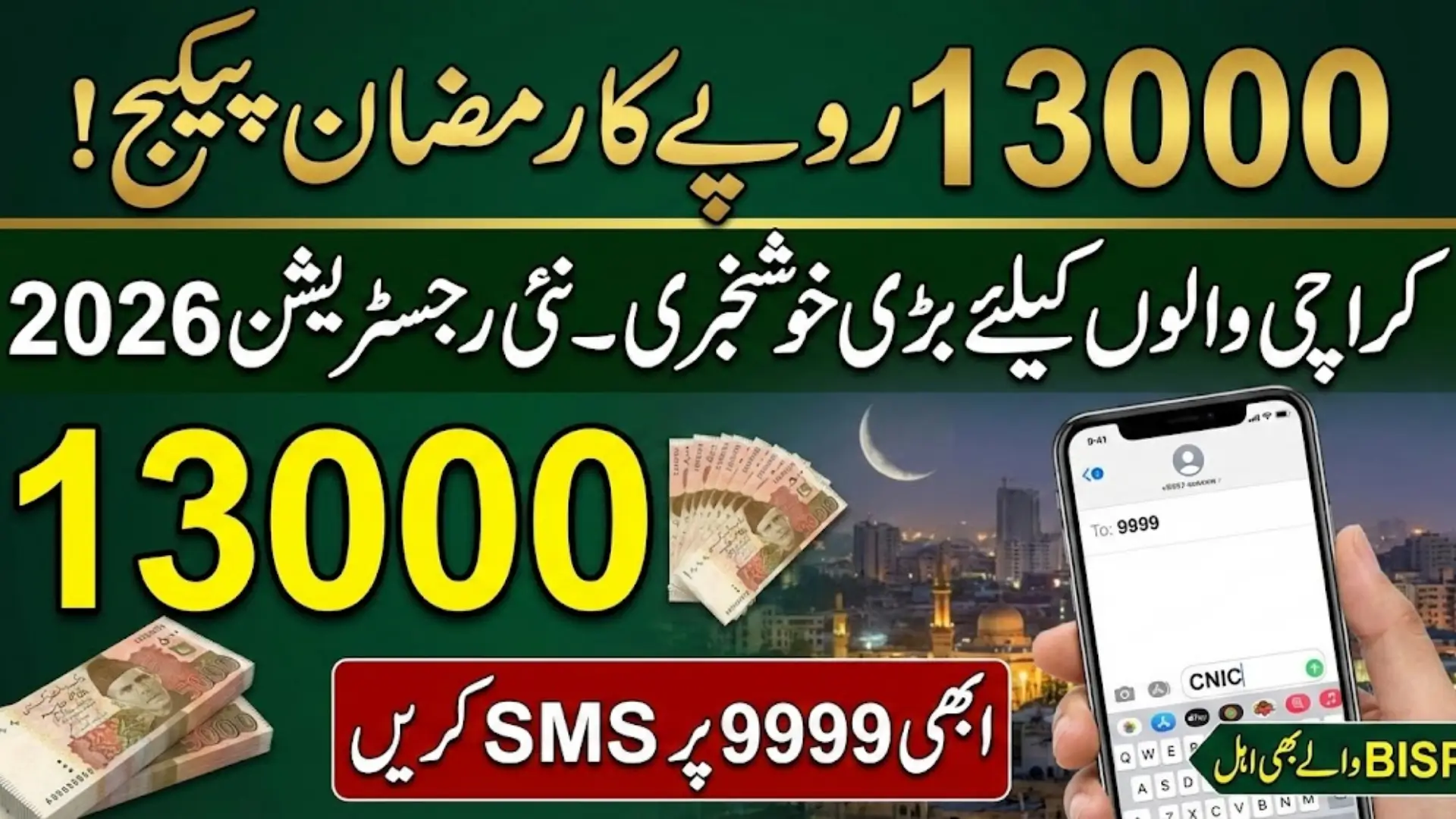 The 9999 Ramzan Package Registration 2026 Karachi is a major financial relief initiative aimed at supporting low-income families during Ramadan. The Rs. 13,000 cash assistance can significantly reduce the burden of rising grocery prices and daily expenses.
