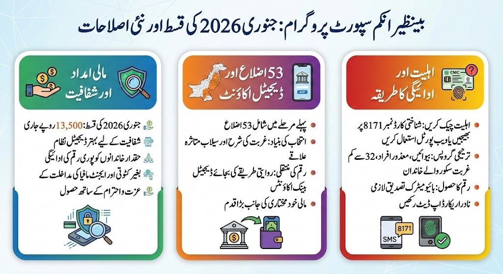 The January 2026 BISP payment is designed to provide immediate financial relief to families living below the poverty line. This assistance helps households manage basic needs such as food, education expenses, utility bills, and healthcare costs during difficult economic conditions.