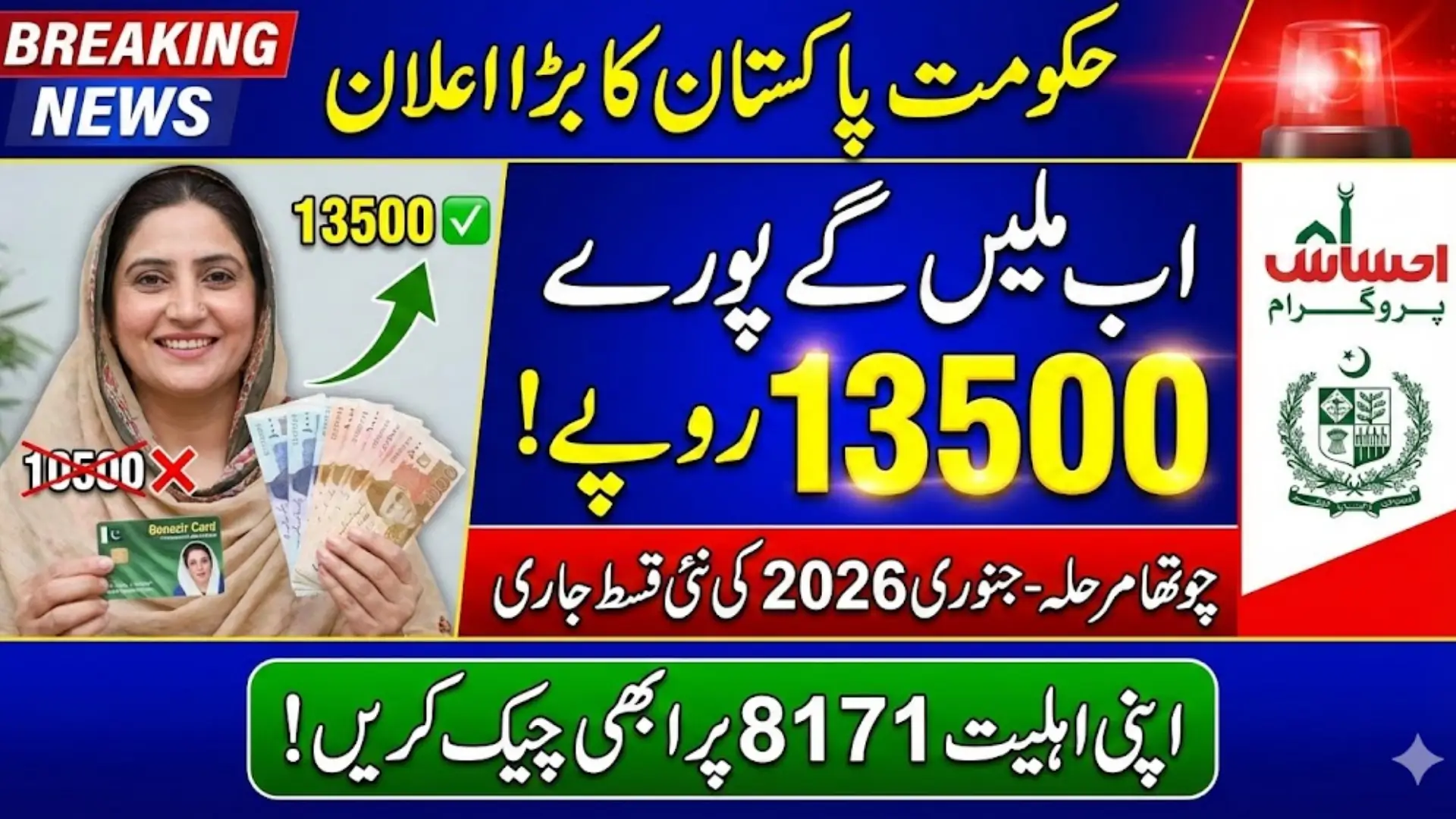 The fourth phase of the money is being launched by the Ehsaas program and this is the first phase of 2026 which will provide an amount of 13500 to those who belong to poor and deserving families. If you have not received the money yet, then follow the steps given to get the money and after that you will be able to track your relief money easily to see where your money has reached.