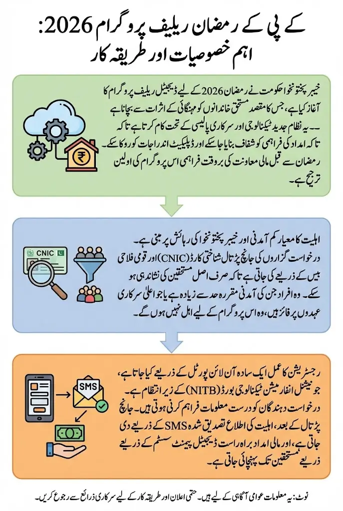 KPK Ramzan Relief 2026 Online Registration People throughout Khyber Pakhtunkhwa want to learn about Ramzan relief support programs more than before because they need to plan their expenses for upcoming Ramadan. Families throughout local markets and rural areas need official documents that explain the application process and the assistance they will receive. The program uses official policy direction and administrative planning to deliver financial aid through digital systems which enable deserving households to receive assistance without delays.