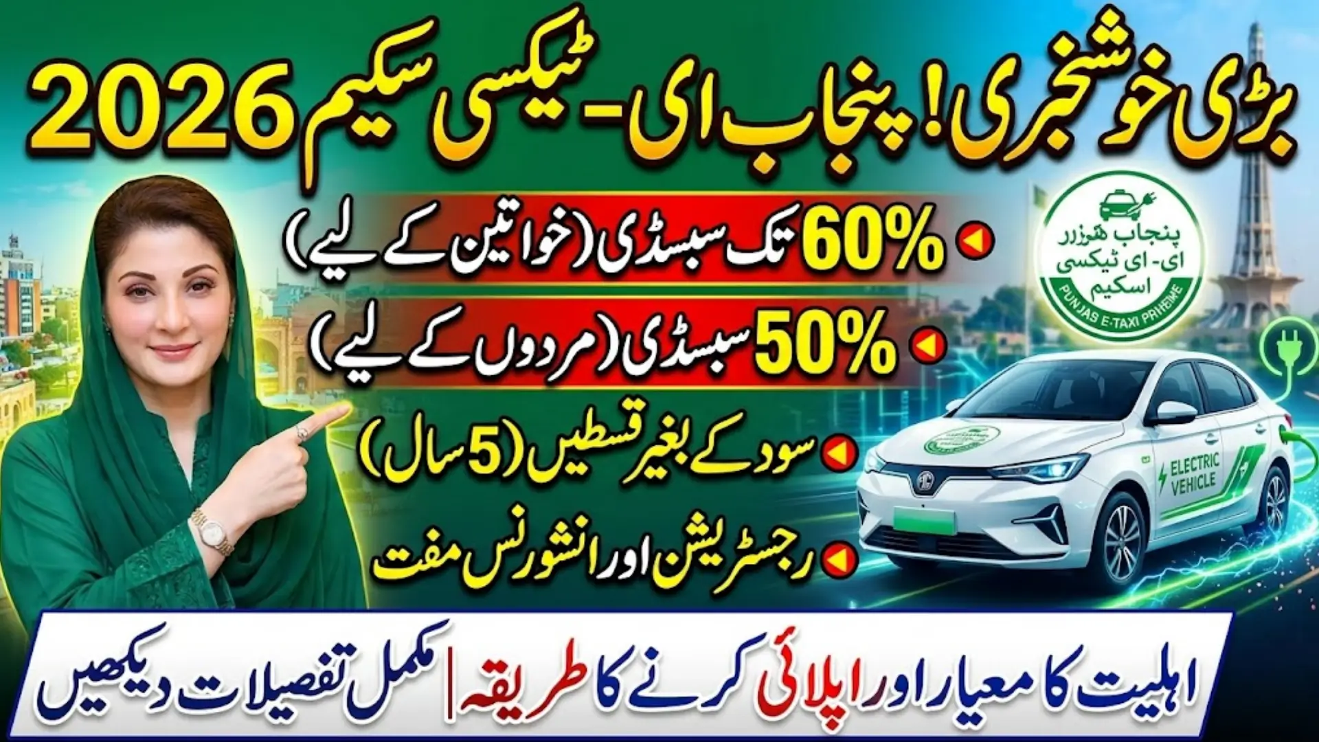 Punjab E-Taxi Scheme 2026 Eligibility Criteria Punjab has officially stepped into the era of electric public transport with the introduction of the E-Taxi Scheme under the leadership of Chief Minister Maryam Nawaz Sharif. The initiative has been designed to modernize the transport system, reduce environmental damage, and provide stable employment opportunities for citizens who want to earn through dignified work. The first rollout has focused mainly on Lahore, where traffic congestion and fuel costs have long affected drivers and commuters.
