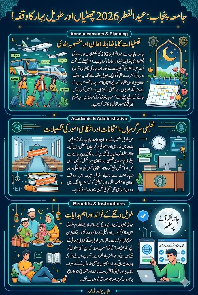 Students who prepare academically, complete administrative tasks on time, and stay updated through official channels can enjoy a peaceful Eid and return to campus refreshed. This organized approach ensures that celebrations and studies go hand in hand, reflecting the responsible academic culture of Punjab University